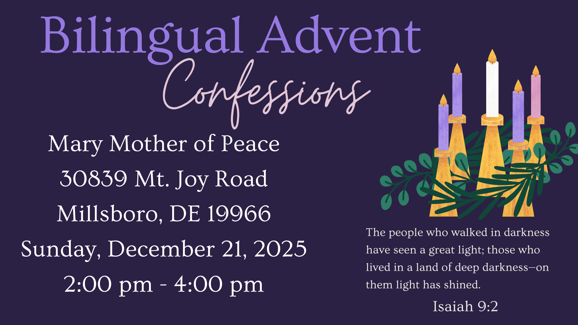 The mission of St. Michael the Archangel and Mary Mother of Peace Parish is to proclaim God’s message to the people of Sussex County and beyond with our example of the Christian life. We are all called to holiness and we dedicate ourselves to the ongoing mission of Christ through the celebration of the Mass, the Sacraments, and service St. Michael the Archangel and Mary Mother of Peace Parish to others.