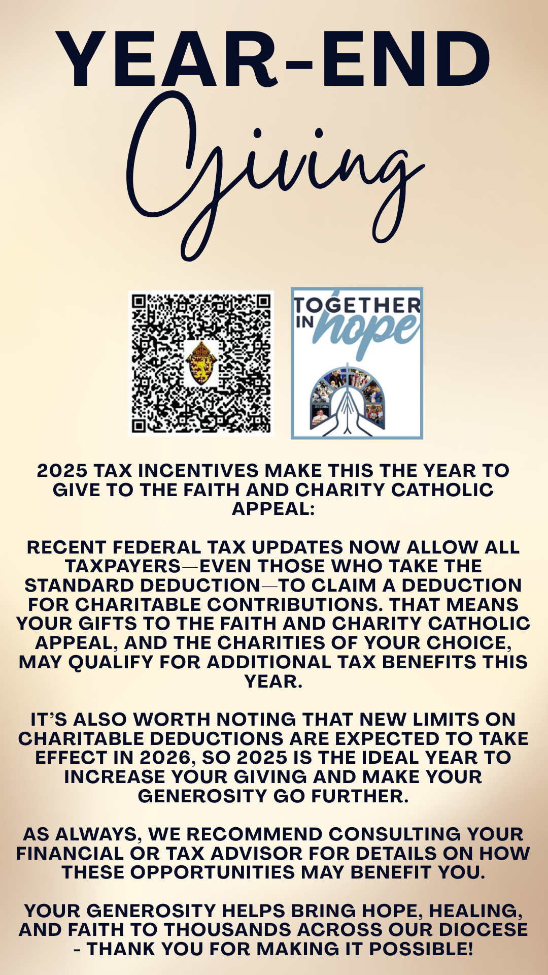 Year-End Giving: 2025 Tax Incentives Make This the Year to Give to the Faith and Charity Catholic Appeal: