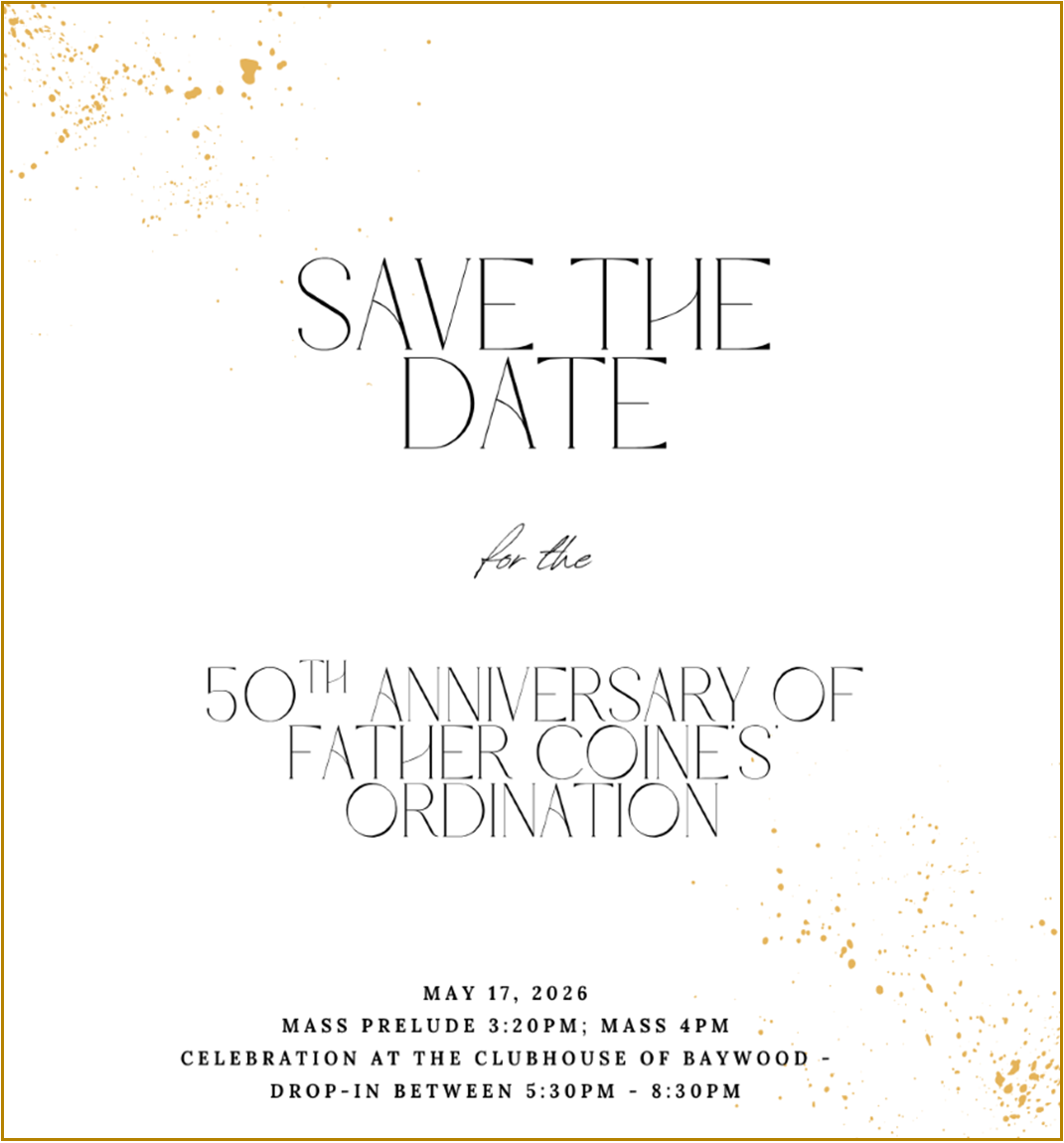 In Observance of Columbus Day, the Parish office is closed on Monday, October 13, 2025.